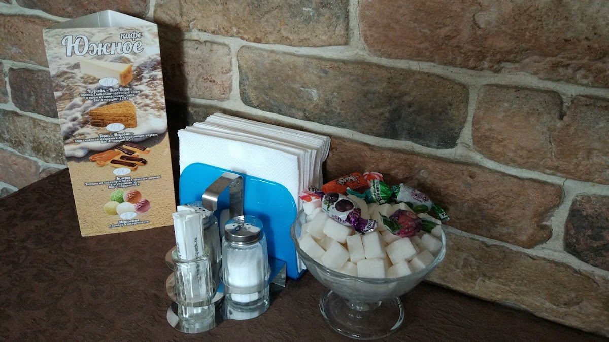 As you step inside Kafe 'Yuzhnoye', you are greeted by the delightful aroma of freshly prepared meals that waft through the air, creating an instant feeling of welcome and comfort. The ambiance is charmingly intimate, with decor that combines local character with a hint of homeliness, perfect for a casual meal or a friendly gathering.